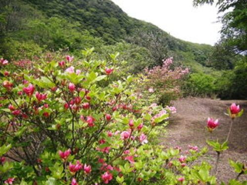 白い霞のような白い大島桜が終わると大島は徐々に華やかに色付きます。 つつじの季節が来ました。 この花もやはり桜と同じく島の下からゆっくりと(温度しだいでしょうが)山頂に上がっていきます。今は、三原山内輪も花が見られるようになりましたよ。 大島…