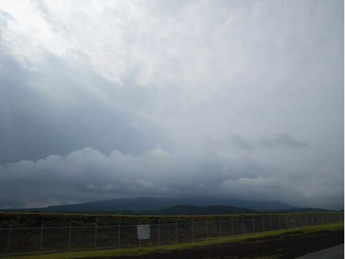 今日は羽村市あきる野市の『大島・子供体験塾』でガイドの手伝いをしました。 雨が降ったり止んだりで南南西の風、山は霧がすごかろうと予測されます。 朝、下界からの三原山は頂上付近が霧に覆われていました。 これでは内輪(ないりん)の景色は臨めないか…