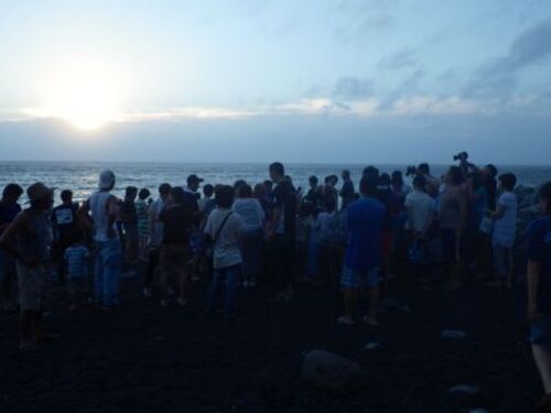 ナイトツアーでウミガメの産卵に出会ったのは、今年の7月13日のことでした。 翌14日には、島でウミガメを研究しているグループが卵を確認し、踏み荒らされないように柵で囲ってくれました。 そして産卵から49日目の昨日、研究グループの成瀬氏から下記のよう…