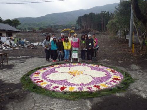 今日は、島ガールツアーのガイドに行って来ました。ツアーは、台風26号の被害にあった"ホテル椿園”の庭で行われた“インフィオラータ”を訪ねることから始まりました。 (詳細は、http://www.asahi.com/articles/ASG4M4DJQG4MUTIL00Q.html) 花で絵を描くイン…