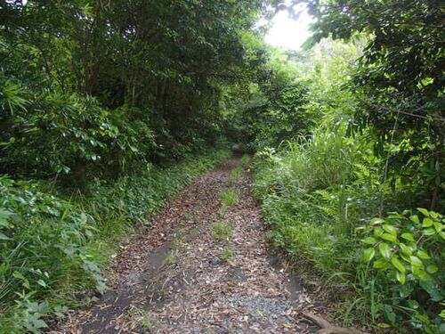 松の窪溶岩流再チャレンジ(前回は5月18日ブログ) 今日は一人で行くぞ! 早速、道が変わっています。前回には無かったこの重機の跡は山の中に生えているアスナロを掘り出すために付けられたものです ずっと上の方に続いています 沢道に入ります 砂がフカ…