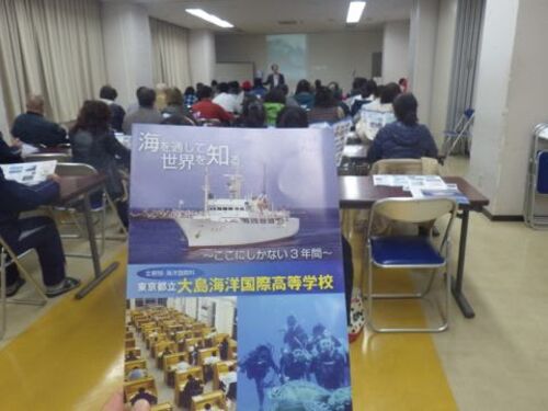 2月16日に行われた、表題のジオガイド講習の報告です。 この日の講習参加者は50名。 1人目の講師は、都立大島海洋国際高校校長・千葉勝吾先生。 島で通称“海国”と呼ばれる学校は、全寮制で生徒数230名(うち島出身者20名)。 高校生はパンフレッ…