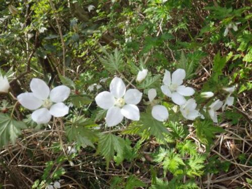 今日は、2名のお客様&ジオガイド講習生1名と、半日ツアーに行って来ました。 歩き始めてすぐに出会ったモミジイチゴ。 (本当は下向きに咲いているのですが、ちょっとだけひっくり返ってもらいました(^_^;) あちらこちらで花盛りとなったカジイチゴ。 春の…
