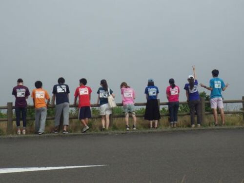 今日は、毎年恒例となった東京G大学のダイビングクラブ『ネプチューン』の皆さんと、三原山を歩いて来ました。 昨年まではダイビングかジオツアーの2択でしたが、今年は全員でジオツアーに参加してくれました。 出発前の山頂口駐車場で。 「目の前が雲なのに…
