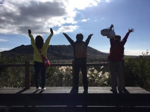 昨日体験ダイビングに参加されたお客様と、三原山の半日ツアーに行ってきました。 伊豆大島が初めてなのでまずは火口を目指すことになり… 出発地点でガイドも一緒に記念撮影! 後ろ向きなのは、奥様が「顔が映るのは恥ずかしい」とおっしゃったからですが、…