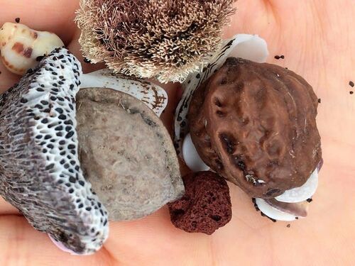 先週、海なし県の岐阜から遊びにきた4歳児T君を 大島で一番長い砂浜のある「砂の浜」に案内しました。 海の楽しみ方は入るだけではありません。 砂浜には色々なものが落ちていました。 なぜか浜のあちこちに落ちてるクルミ! 風化しかけたものも新しそうなも…