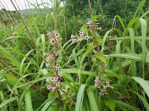 シマヘクソカズラは、草地や車道沿いの藪など、島のあちらこちらで普通に見られる植物です。 あまりに普通すぎて生息環境のわかる写真を撮っておらず、2013年7月29日に三原山周辺の草地で撮影したものを、ようやく見つけました。 こういう感じで他の茎や枝に…