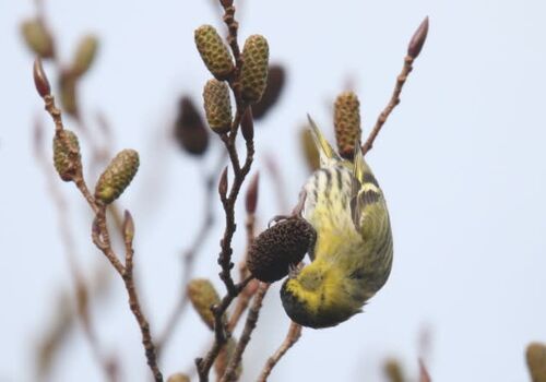 北国からやってきた冬の使者、今シーズンも撮影することができました。 オオバヤシャブシの実から種をほじって食べています。 色鮮やかなオスです。 こちらはメス。 正面顔かわいいですねー。 この子も種を食べていました。 (10日撮影) がんま