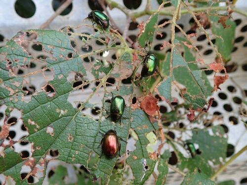夏真っ盛り! 虫たちも元気です。 先月後半から同じ場所でヒメコガネを探し続けていました。 見て下さい。 個体ごとに色の変化があってそりゃあもう美しいことと言ったら! とは言ってもそのほとんどがこういった緑系です。 これはこれでものすごく綺麗! う…