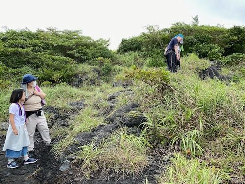 8月20日、生きもの好きのご家族と、三原山に登ってきました。 溶岩を見ながら「あっちから流れてきて、こうなったのではないか?」と、噴火時の様子を推理するお父さんと息子さん。 探究心に関心しました。 火口では「おお〜大地が割れとる!」という素敵な…