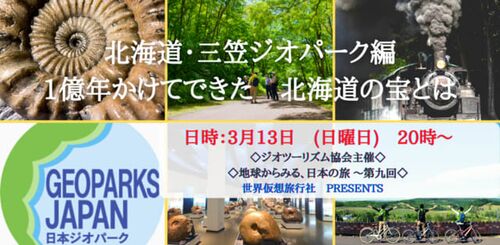 九州から始まった12回連続の「地球から見る、日本の旅」オンラインジオツアーは、ついに北海道シリーズに突入です! 今週末、13日(日)20時から、三笠ジオパーク編開催されます。 テーマは「1億年かけてできた 北海道の宝とは」。 今までは、場所の移動をし…