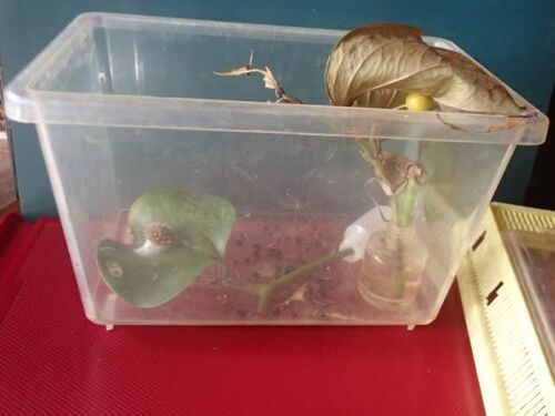 あ~ 大変! 先日外から2匹の幼虫をお迎えしたのですが、 もっと小さい時に飼育箱の中に入っていたハエトリグモが居て一度は出ていたのですが 翌日もやはり居ましたが、外に出ていってもらいました。 しかし、その後よく見ると幼虫が1匹しかいない これは食…