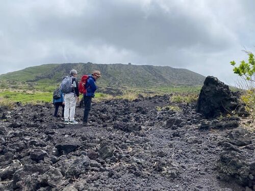 今日は会社同僚の男性陣と、火口〜裏砂漠を歩いてきました。 三原山はなんとか見えているものの、ギリギリまで雲が降りてきているし、風の音も聞こえるし…、という天気ではありましたが 足元には、コケリンドウの花があちらこちらで満開 小さな白いスミレ(…
