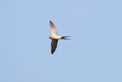 先週の撮影です。 朝、牧場周辺を混群で飛び回っていました。 まずはコシアカツバメ。 ちょっと薄いですが腰の赤い部分がわかる画像があります。 個体によってはもっと鮮やかなコもいるんですけど今回は撮れませんでした。 生息地を北に広げているというので…