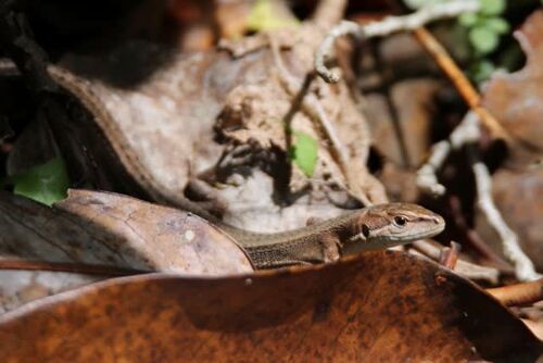 このブログには何度も登場している常連さんです。 先週、山の小道でたくさん見つけました。 これ、全部別個体です。 ほんの100m程歩いただけであと6個体は観ました。 出会った全部をカメラに収めたかったのですがそうもいかず。 どれも10cmくらいでまだ子ど…