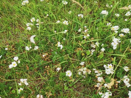 初夏の頃、海岸そばの草地で、「私、バラの花です!」って感じで(?)咲き誇るテリハノイバラ。 3cm以上ある白い花は、よく目立ちます。 鎌型をした鋭い棘が地面を這っているので、夏にサンダルばきで歩くときには注意が必要です! 葉っぱは、厚くてテカテ…