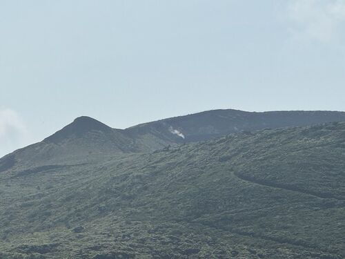 8月29日、一人旅の女性と一緒に、三原山に登ってきました。 20日近く雨は降っていませんでしたが、火口の壁からは久しぶりに一筋の噴気が立ち上っているのが見えました。 見上げる青空は美しいけれど… 風が弱くて暑すぎるので、日傘&濡れタオル必須! お客様…