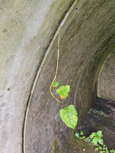 普段はあまり入らない避難壕の中で、ハチジョウイタドリ(以下イタドリ)の葉が伸びているのに気づいたのは、8月7日のことでした。 暗い避難壕の隙間から茎を伸ばすイタドリのたくましさに、お客様と一緒に驚いて観察しました。 過去の写真を確認したところ…