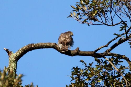 今季は多いですハイタカ。 昨日も出会えました。 まずはスダジイにとまっている姿。 この後は飛んで・・・ 素晴らしくカッコイイ飛翔を見せてくれました。 そして同じ場所でノスリも。 ノスリもたくさん来ています。 そのうが膨らんでいるので何かを食べたば…