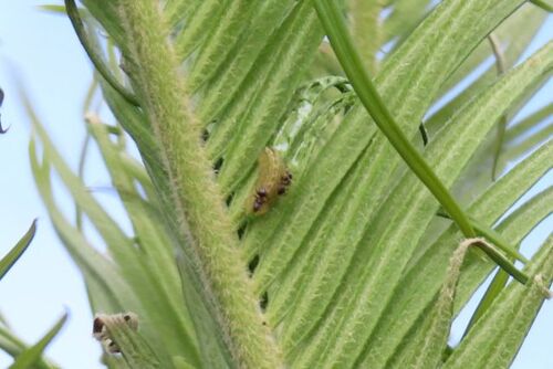 クロマダラソテツシジミの幼虫を見つけました。 今月8日と17日、同じソテツです。 まずは8日の様子。 おおー。 アリがたかってる! なんかウマい成分を出しているんでしょうか? っていうか、出してるんでしょうね。 続いて17日。 あれ? アリがいない・・・…