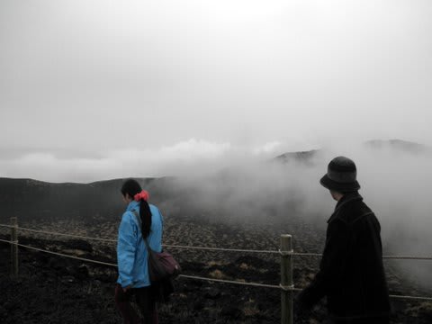 突然霧が晴れて目の前に黒い地面と立ち上る噴気が見えました!「良かった~。ここまで来たかいがある。」