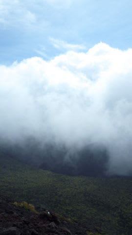 ふと後ろを振り向くと、火口から噴煙のように雲が立ちのぼっていました。