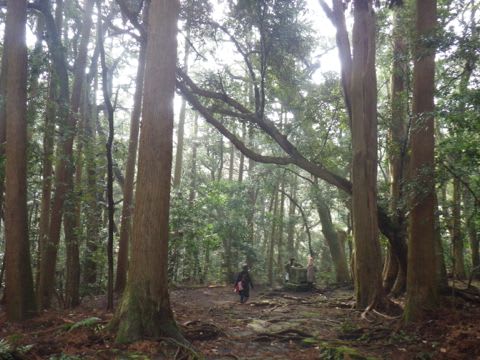 今日はツヤツヤの森を歩いた後…