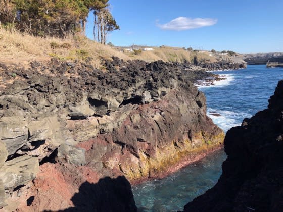 何回かの溶岩流が重なっている、谷を流れた溶岩の断面が観察できる場所なのだそうです。