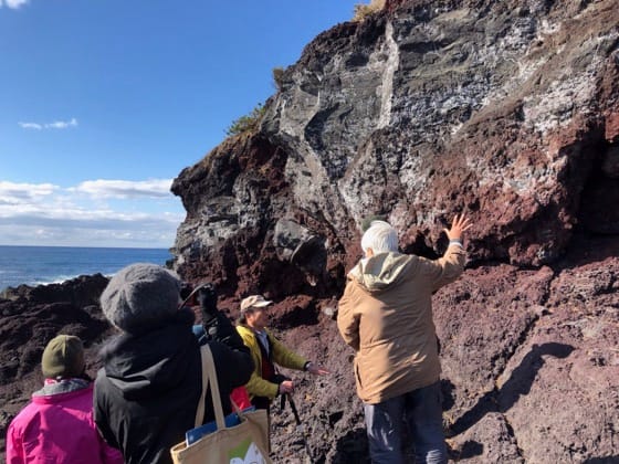 早朝船で来島し、ギリギリまで私たちの疑問に答えてくださった川辺先生(伊豆大島火山との付き合いは30年以上となるそうです!)ありがとうございました!