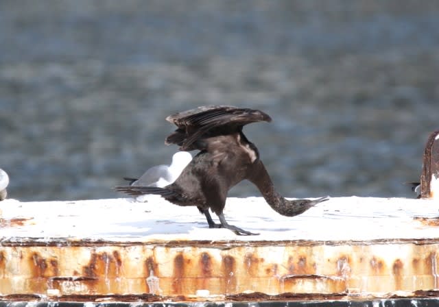 2021-03-20 ヒメウ 鳥 変な格好してますがこれは鳥流の伸びです。 「うぇ~い」 これから換羽するのでしょうか? ちょっとしょぼくれた感じです。 とそこへセグロカモメかオオセグロカモメの若鳥がやって来ました。 !? クチから釣り糸が! ヒメウも驚いているよう(?) しかしそれはニンゲンの勝手な妄想、また伸びをして・・・ 飛んでいきました。 17日の撮影です。 がんま
