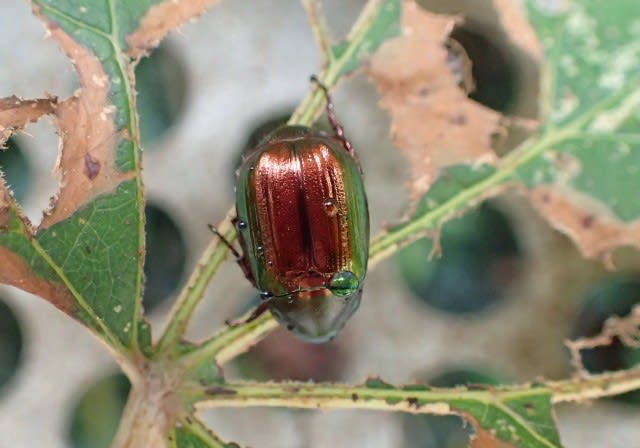 2021-08-14 ヒメコガネ赤色型 虫 昨日もヒメコガネを探しました。 たくさんいました! アオドウガネもいます。 また茄子紺の個体がいないかと目を凝らすと・・・ !! 今回はこの赤色型がいました。 何年か振りの出会いでワタクシ調べでは茄子紺の個体よりも数が少ないです。 うれしい! 一見赤く見えるグリーンメタリックの個体とは違うんです。 小さな虫に喜びと癒やしをもらいました。 がんま