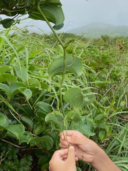 サルトリイバラのツルに触りながら「ジャックと豆の木みたいだ」と観察したり