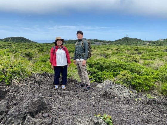 火口に向かう途中の36年前の溶岩上では、華やかなオオシマツツジが素敵でした〜😊