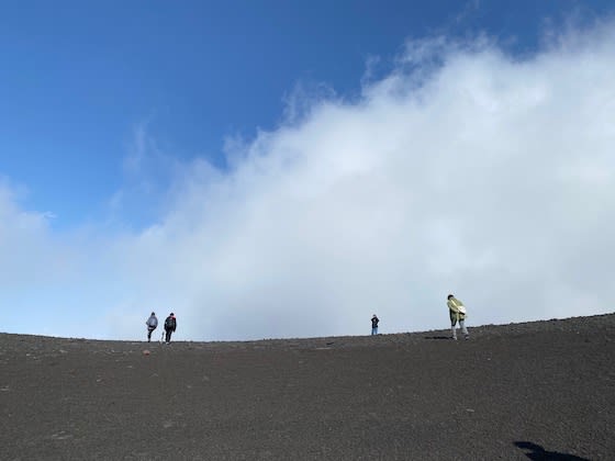 1日目は三原山〜裏砂漠のツアーでしたが、歩きはじめは霧で真っ白!!