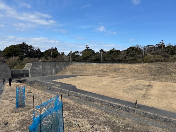 カルデラから溢れた溶岩流から集落を守るために掘られた、大きな溝です。
